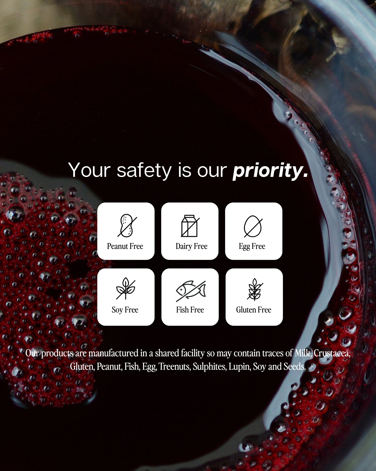 May be present: May contain, Milk, Crustacea, Gluten, Peanut, Fish, Egg, Treenuts, Sulphites, Lupin, Soy and Seeds.